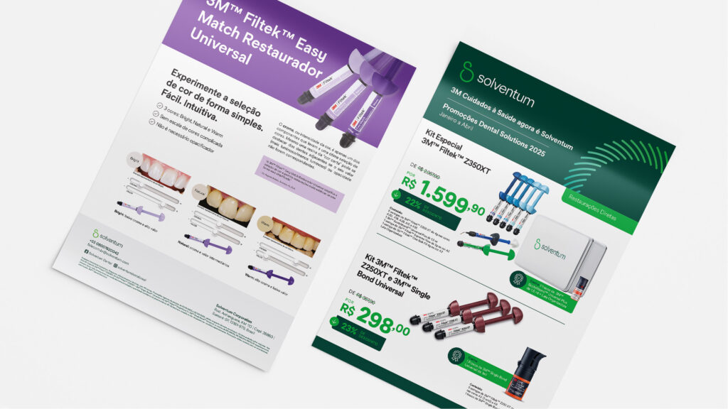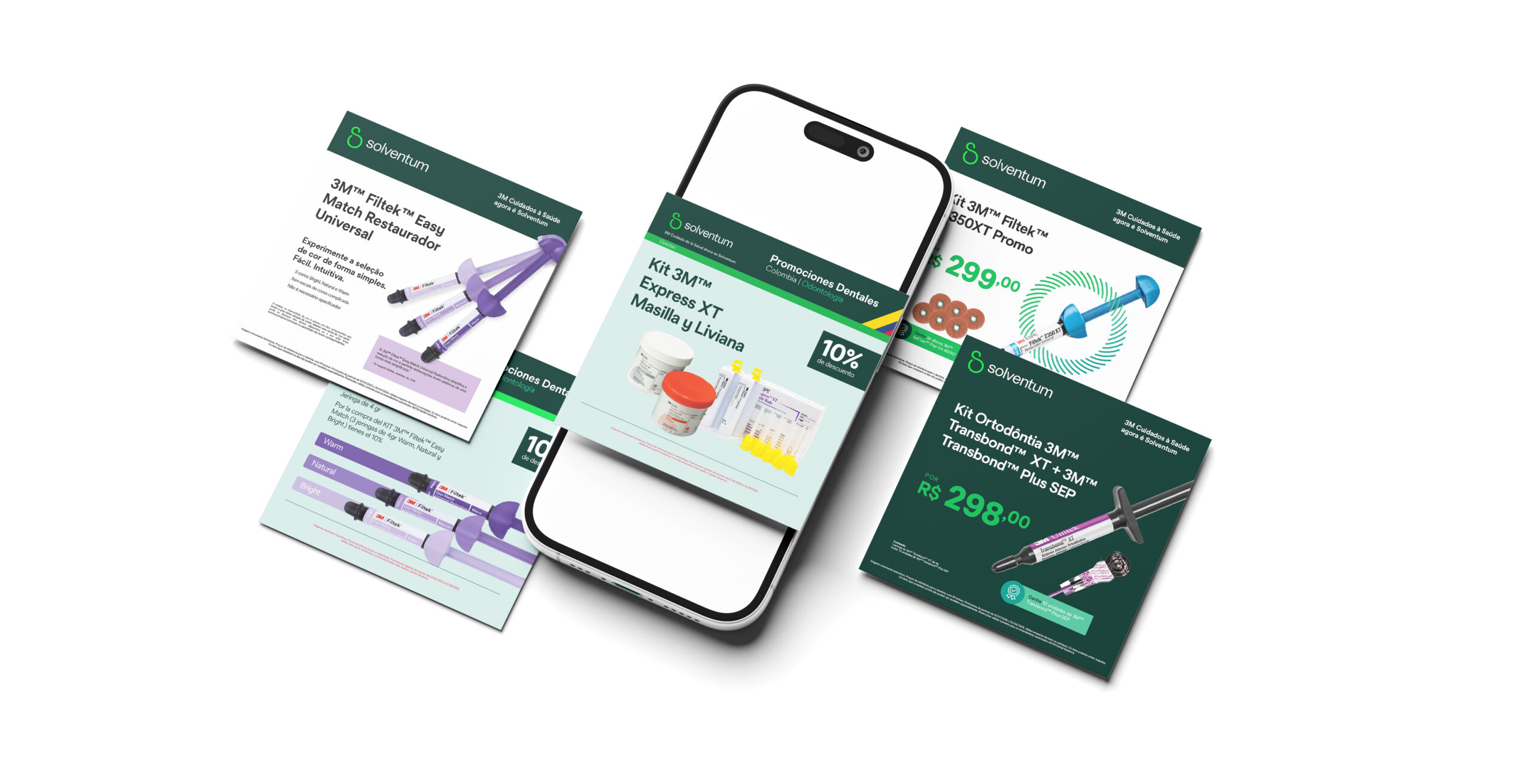 Desde 2020, nossa atuação com a marca era concentrada no digital. O desafio de ampliar essa frente surgiu quando a Solventum precisou de um material integrado — on e offline — para apoiar o ciclo promocional dos vendedores em toda a região.